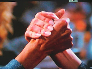 Eventually, the warden's break her, and she slides down the wall in a tragically artsy-fartsy image that I thought was actually pretty cool in its simplicity.